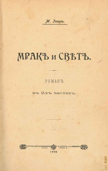 Иогель М.К., Мрак и свет. Роман в 2 ч. — 1900