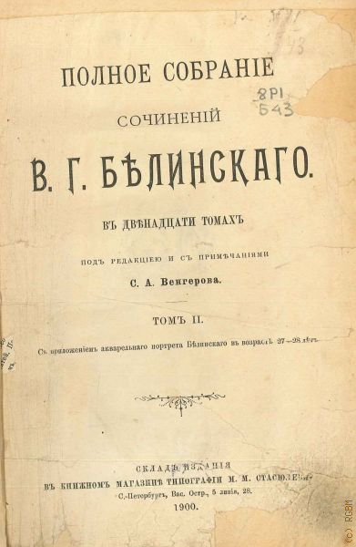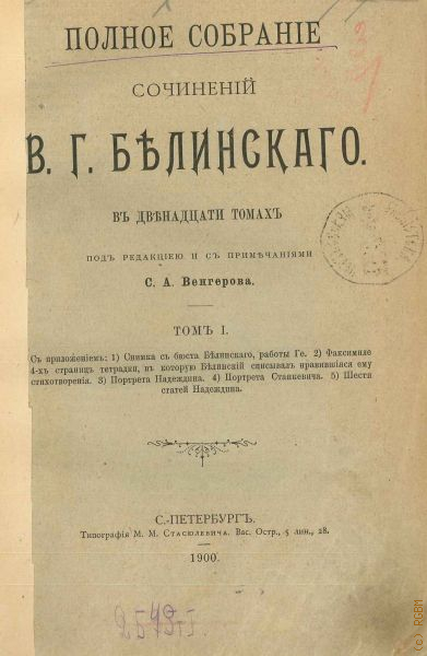 Белинский В.Г., Полное собрание сочинений В.Г. Белинского. В 12 томах: Т. 1 — 1900