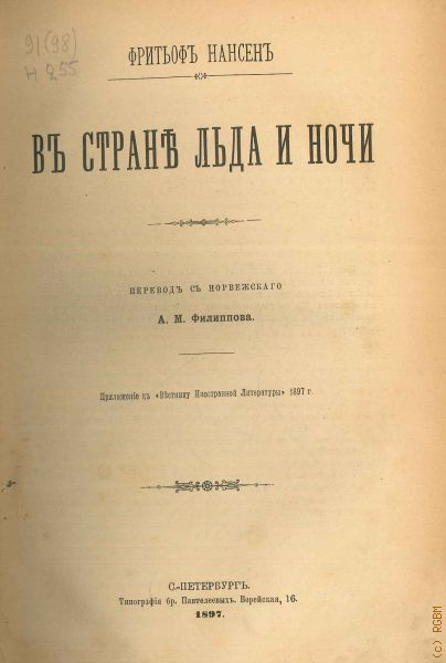 Нансен Ф., Среди льдов и во мраке полярной ночи — 1897-1898