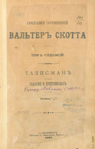 Скотт В., Собрание сочинений Вальтер Скотта. Т. 7: Талисман: Сказание о крестоносцах: Пер. — 1897
