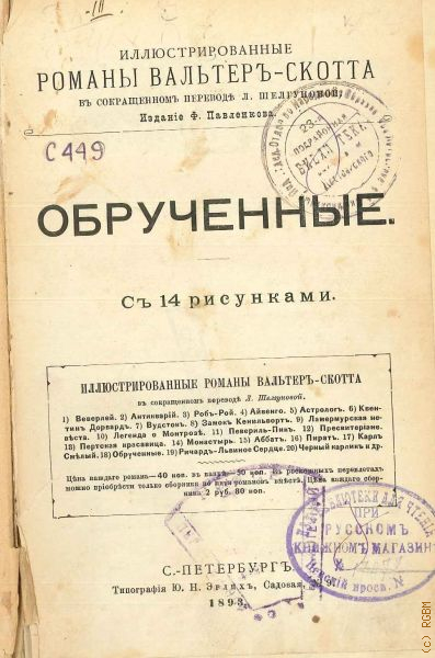 Скотт В., Обрученные. С 14 рис. — 1893 (Иллюстрировавнные романы Вальтер-Скотта в сокращенном переводе Л. Шелгуновой)