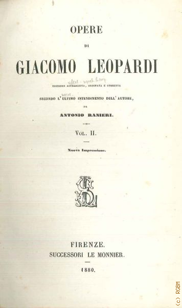 Leopardi G., Vol. 2. Opere di Giacomo Leopardi — 1880