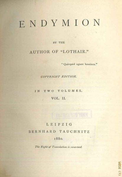 Disraeli B., Endymion — 1880 (Collection of British authors. Vol. 1940, 1941)