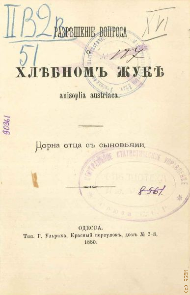 Цорн А.А., Разрешение вопроса о хлебном жуке anisoplia austriaca — 1880