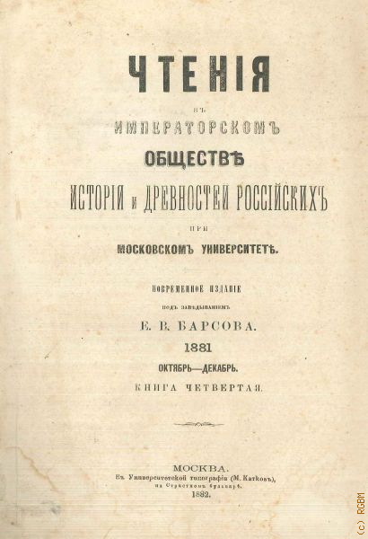 Императорское московское общество истории и древностей российских, Чтения в Императорском обществе истории и древностей российских при Московском университете. 1881 октябрь-декабрь. Кн. 4 — 1882