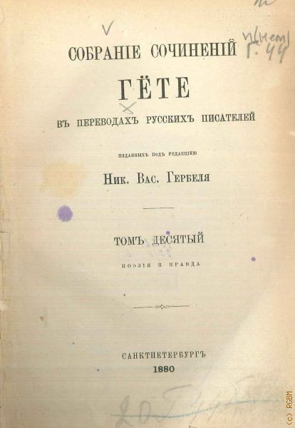 Гёте И.В., Собрание сочинений Гете в переводах русских писателей, изданных под редакцией Ник. Вас. Гербеля. Т. 10 : Поэзия и правда — 1880