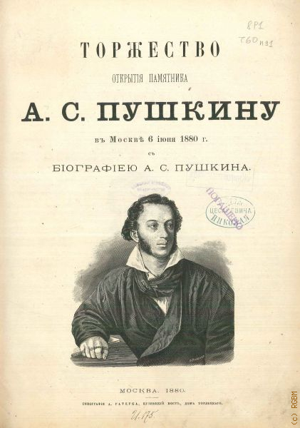 Торжество открытия памятника А.С. Пушкину в Москве 6 июня 1880 г. : С биогр. А.С. Пушкина — 1880