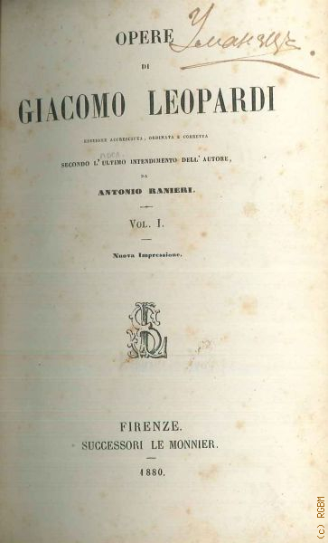 Leopardi G., Vol. 1. Opere di Giacomo Leopardi — 1880