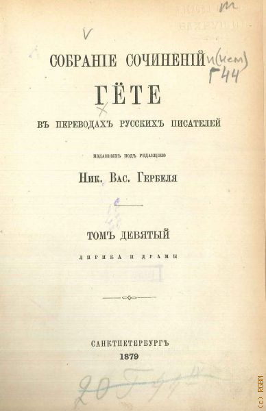 Гёте И.В., Собрание сочинений Гете в переводах русских писателей, изданных под редакцией Ник. Вас. Гербеля. Т. 9 : Лирика и драмы — 1879