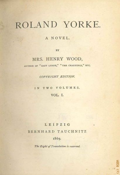 Wood H., Roland Yorke — 1869 (Collection of British authors. 1050)