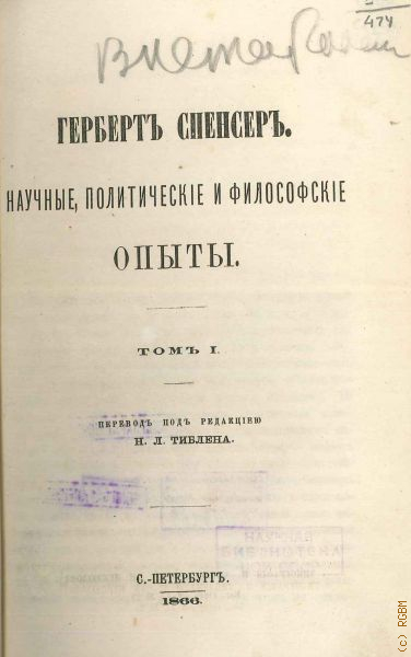 Спенсер Г., Научные, политические и философские опыты — 1866