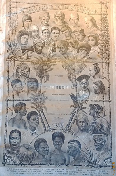 Содержание: Таб. 1. [Течения и области с наибольшим количеством дождей] ; Таб. 2. [Карта полушарий] ; Таб. 3. Физическая карта Азии; Таб. 4. Политическая карта Азии; Таб. 5. [Иллюстрации к карте Азии] ; Таб. 6. Физичес. карта Африки ; Таб. 7. [Иллюстрации к карте Африки] ; Таб. 8. Физическая карта Северной Америки ; Таб. 9. Политическая карта Северной Америки ; Таб. 10. Физическая карта Южной Америки ; Таб. 11. Политическая карта Южной Америки ; Таб. 12. Австралия ; [Таб. 13]. Физическая карта Европы ; [Таб. 14]. Политическая карта Европы ; [Таб. 15]. Этнографическая карта Европы ; Таб. 16. [Иллюстрации к карте Европы] ; Таб. 17. [Иллюстрации к карте Европы] ; Таб. 18. [Иллюстрации к карте Европы] ; Таб. 19. [Иллюстрации к карте Европы] ; Таб. 20. [Иллюстрации к карте Европы] ; [Таб. 15]. Промышленная карта Европы ; Таб. 22. [Климатические пояса на картах полушарий. Профили : Мировые горные системы] ; Таб. 23. Области распространения человеческих племен ; Таб. 24. Области распространения вер ; Таб. 25. Области распространения хлебных растений ; Таб. 26. Области распространения толстокожих животных. Области распространения сахарного тростника, кофейного дерева, какао, ванили ; Таб. 27. Области распространения птиц и пресмыкающихся ; Таб. 28. Области распространения сумчатых, жвачных и неполнозубых животных ; Таб. 29. Области распространения кошек
