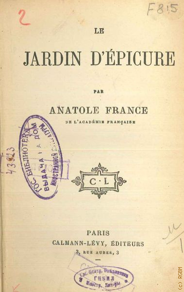 France Anatole, Le Jardin d—Épicure — [Б.г.]