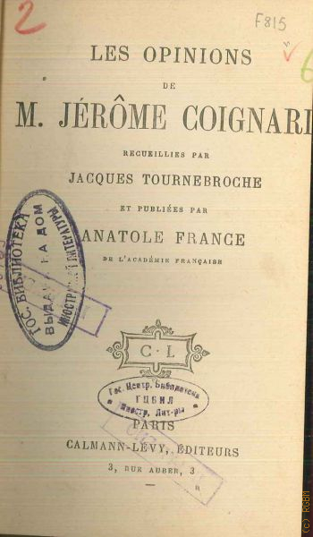 France Anatole, Les opinions de M. J™r¤me Coignard — [Б.г.]