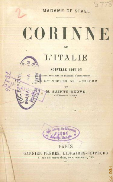 ![Sta›l-Holstein Germaine de, Corinne, ou l'Italie — [Б.г.]](/searchcat/covers/RGUB-BIBL-0000590585.jpg) |