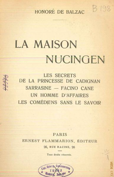 ![Balzac Honor™ de, La maison Nucingen. Les secrets de la princesse de Cadignan; Sarrasine; Facino cane; Un homme d'affaires; Les Com™diens sans le savoir — [19--?]](/searchcat/covers/RGUB-BIBL-0000599079.jpg) |