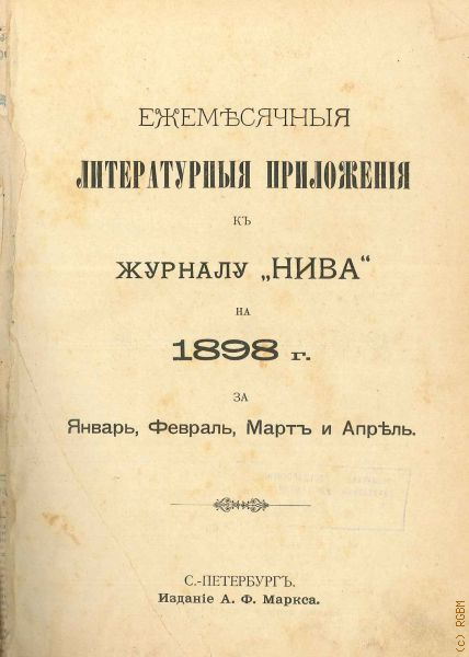 Ежемесячные литературные приложения к журналу "Нива" на 1898 г. за Январь, Февраль, Март и Апрель — [1898]