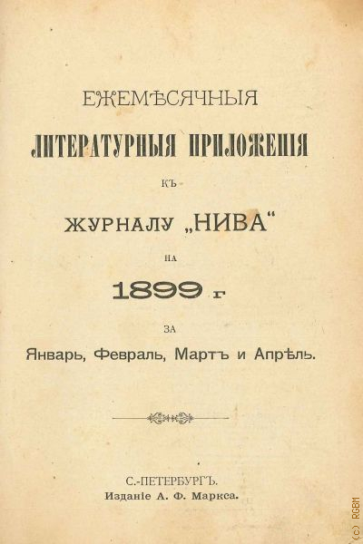 Ежемесячные литературные приложения к журналу "Нива" на 1899 г. за Январь, Февраль, Март и Апрель — [1899]