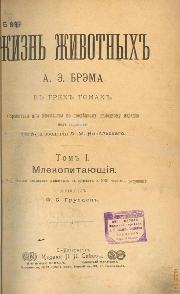 Брем А.Э., Жизнь животных. обработано для юношества по последнему немецкому изданию. в 3 т. — [1902]