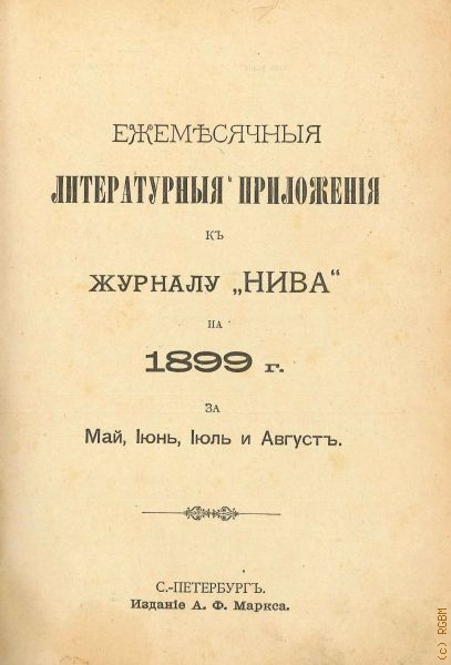 Ежемесячные литературные приложения к журналу "Нива" на 1899 г. за Май, Июнь, Июль и Август — [1899]