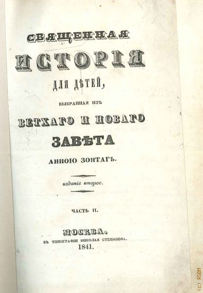 Зонтаг А.П., Священная история для детей, выбранная из Ветхого и Нового завета, Анной Зонтаг. Ч.2: История Нового завета — 1841