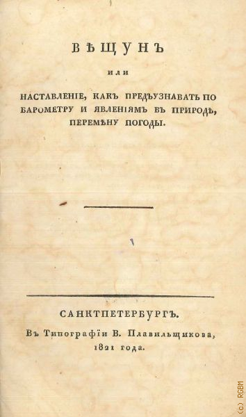 Лихонин, Вещун, или Наставление, как предузнавать по барометру и явлениям в природе, перемену погоды — 1821