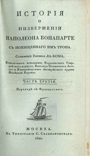 Лабом Е., История о низвержении Наполеона Бонапарте с похищенного им трона — 1822