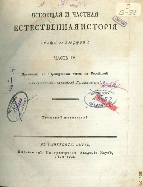 Бюффон Ж.Л.Л. де, Ч. 4. Всеобщая и частная естественная история графа де Бюффона, переложенная с французского языка на российский... — 1812