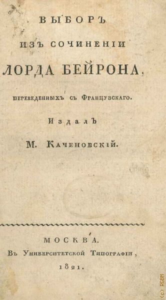 Байрон Д. Г., Выбор из сочинений лорда Бейрона, переведенных с французскаго — 1821