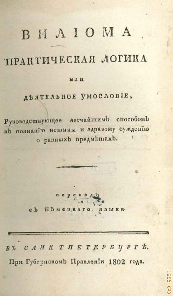 Вилиом П., Вилиома практическая логика, или Деятельное умословие, руководствующее легчайшим способом к познанию истины и здравому суждению о разных предметах — 1802