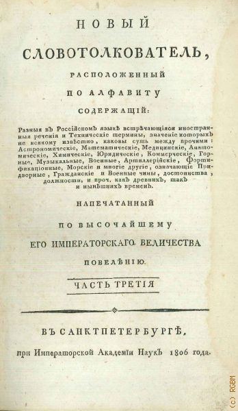 ![Яновский Н.М., [От А до И]. Новый словотолкователь, расположенный по алфавиту, содержащий: разные в российском языке встречающиеся иностранные речения и технические термины ... Т. 1 — 1803](/searchcat/covers/RGUB-BIBL-0000637273.jpg) |