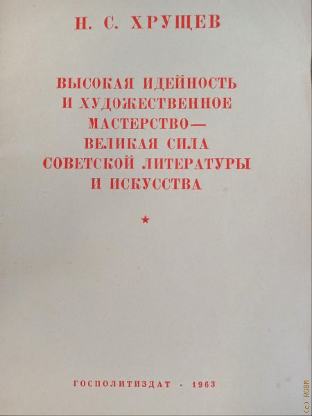 Хрущев Н.С., Высокая идейность и художественное мастерство - великая сила советской литературы. Речь на встрече руководителей партии и правительства с деятелями литературы и искусства 8 марта 1963 года — 1963