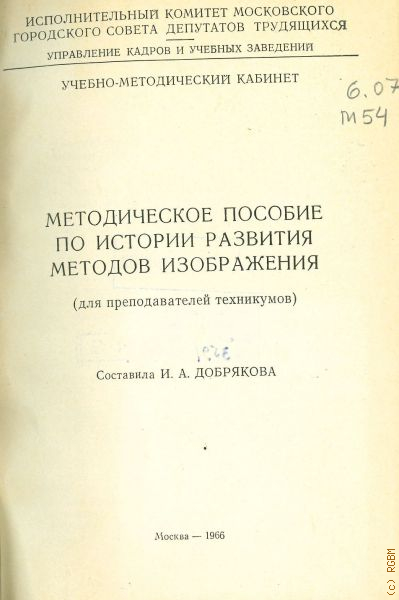 Методическое пособие по истории развития методов изображения (Для преподавателей техникумов) — 1966