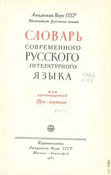 Словарь современного русского литературного языка. Т. 11: Пра - пятью — 1961