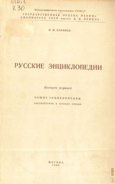 Кауфман И.М., Русские энциклопедии. Вып.1: Общие энциклопедии. Библиография и краткие очерки — 1960