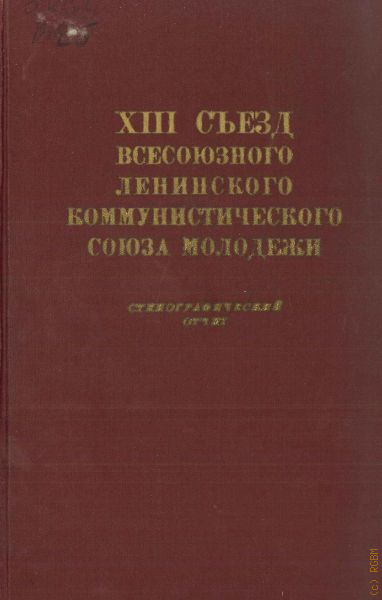 ВЛКСМ Съезд 13 Москва 1958, XIII съезд Всесоюзного Ленинского Коммунистического Союза Молодежи, 15-18 апреля 1958 года. стенографический отчет — 1959
