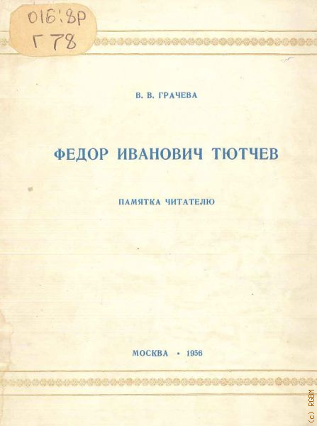 Грачева В.В., Федор Иванович Тютчев. 1803-1873. памятка читателю — 1956 (Памятка читателю. Гос. ордена Ленина б-ка СССР им. В. И. Ленина)