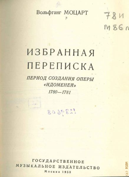 Моцарт В.А., Избранная переписка. Период создания оперы "Идоменей". 1780-1781 — 1956