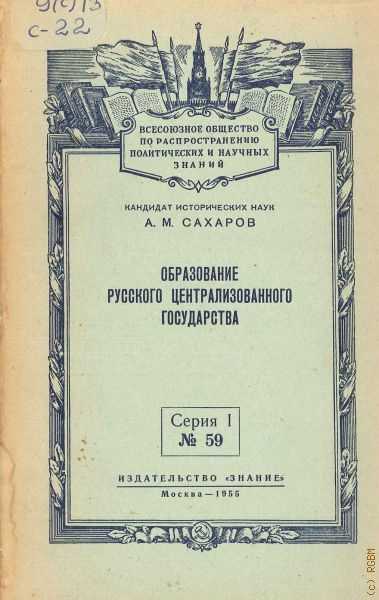 Сахаров А.М., Образование Русского централизованного государства — 1955 (Серия I. Всесоюз. о-во по распространению полит. и науч. знаний — 59))