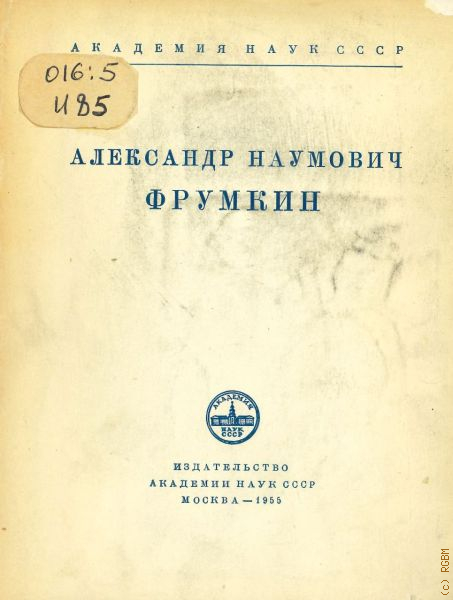 Александр Наумович Фрумкин — 1955 (Материалы к биобиблиографии ученых СССР. Серия химических наук. Акад. наук СССР Вып. 21)