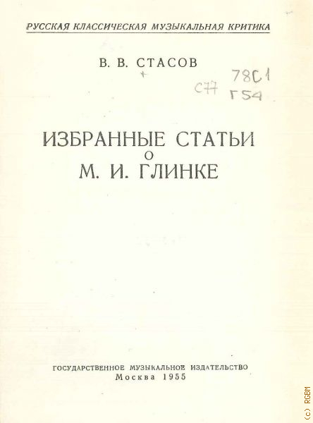 Стасов В.В., Избранные статьи о М. И. Глинке — 1955 (Русская классическая музыкальная критика)