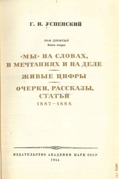 Успенский Г.И., "Мы" на словах, в мечтаниях и на деле. Живые цифры. Очерки, рассказы, статьи. 1887-1888. Полное собрание сочинений Т. 10. Кн. 2 — 1954