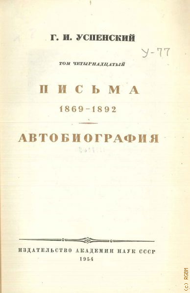 Успенский Г.И., Письма. 1869-1892. Автобиография. Полное собрание сочинений Т. 14 — 1954