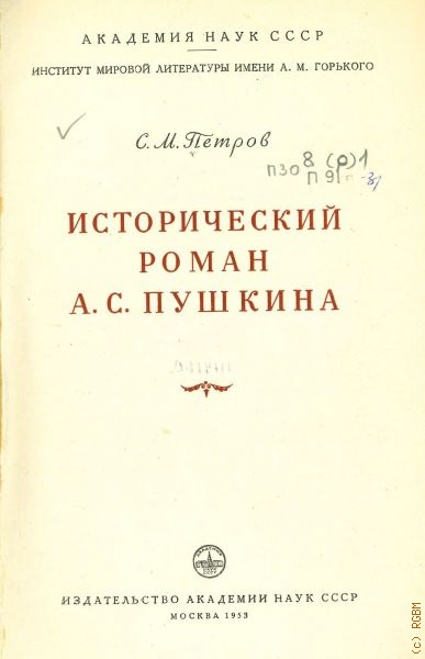 Петров С.М., Исторический роман А. С. Пушкина — 1953