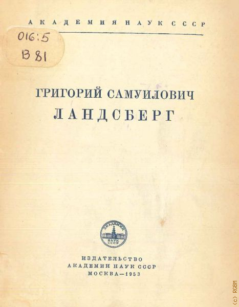 Григорий Мануилович Ландсберг — 1953 (Материалы к биобиблиографии ученых СССР. Серия физики. Акад. наук СССР Вып. 6)