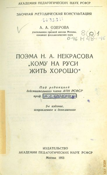 Озерова А.А., Поэма Н. А. Некрасова "Кому на Руси жить хорошо" — 1953