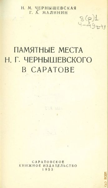 Чернышевская Н.М., Памятные места Н. Г. Чернышевского в Саратове — 1953