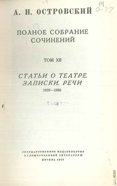 Островский А. Н., Статьи о театре. Записки. Речи. 1859-1886. Полное собрание сочинений Т. 12 — 1952
