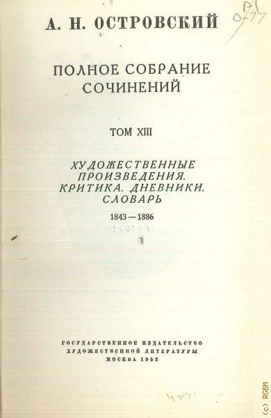 Островский А. Н., Художественные произведения. Критика. Дневники. Словарь. 1843-1886. Полное собрание сочинений Т. 13 — 1952