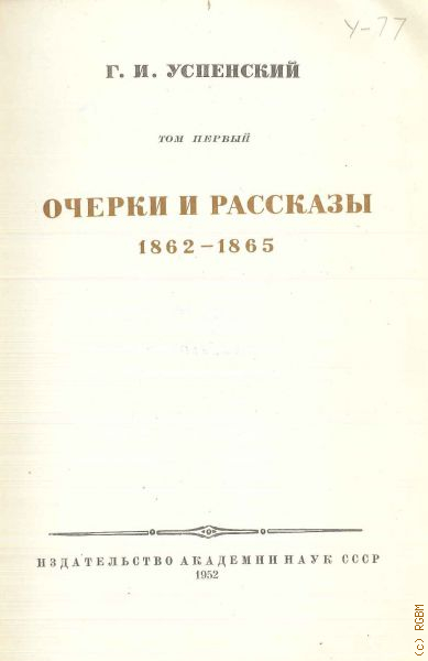 Успенский Г.И., Очерки и рассказы. 1862-1865. Полное собрание сочинений Т. 1 — 1952